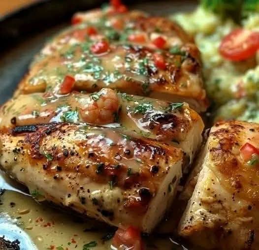 Transfer the skillet to the preheated oven and bake for 20-25 minutes, or until the chicken is cooked through and the internal temperature reaches 165°F (74°C).