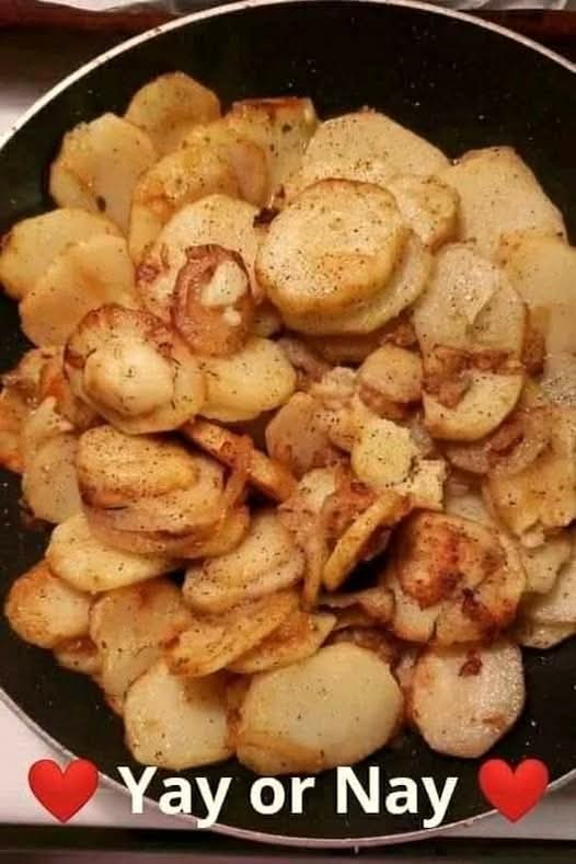 When the oil is ready (shimmery) put the potato and the onion into the oil.