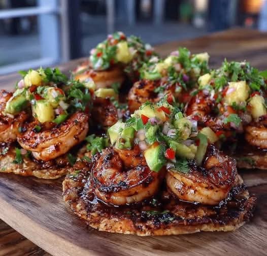 Place cooked shrimp on each tortilla. Top with pineapple salsa and any optional toppings. Serve immediately.