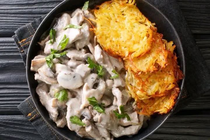 Season carefully and serve immediately, traditionally paired with rösti.